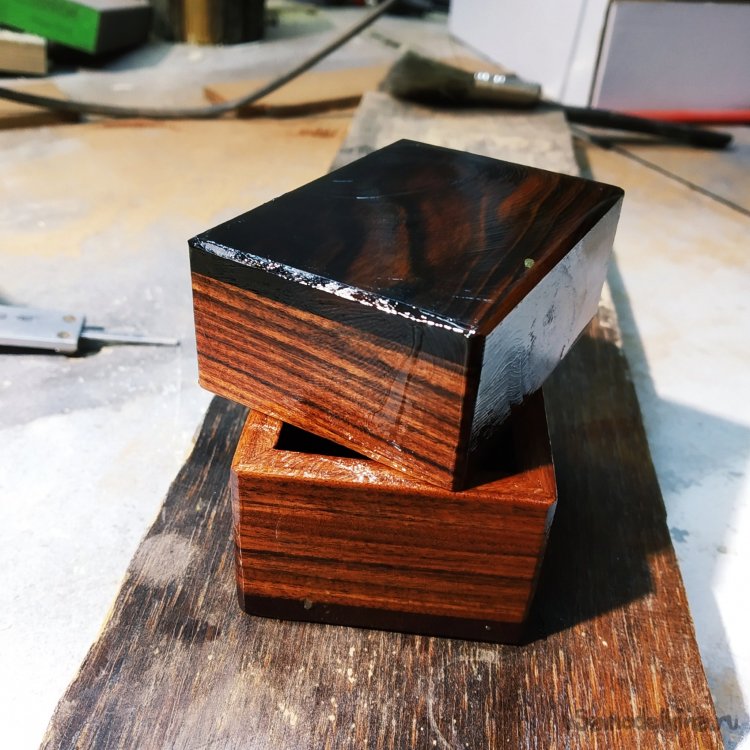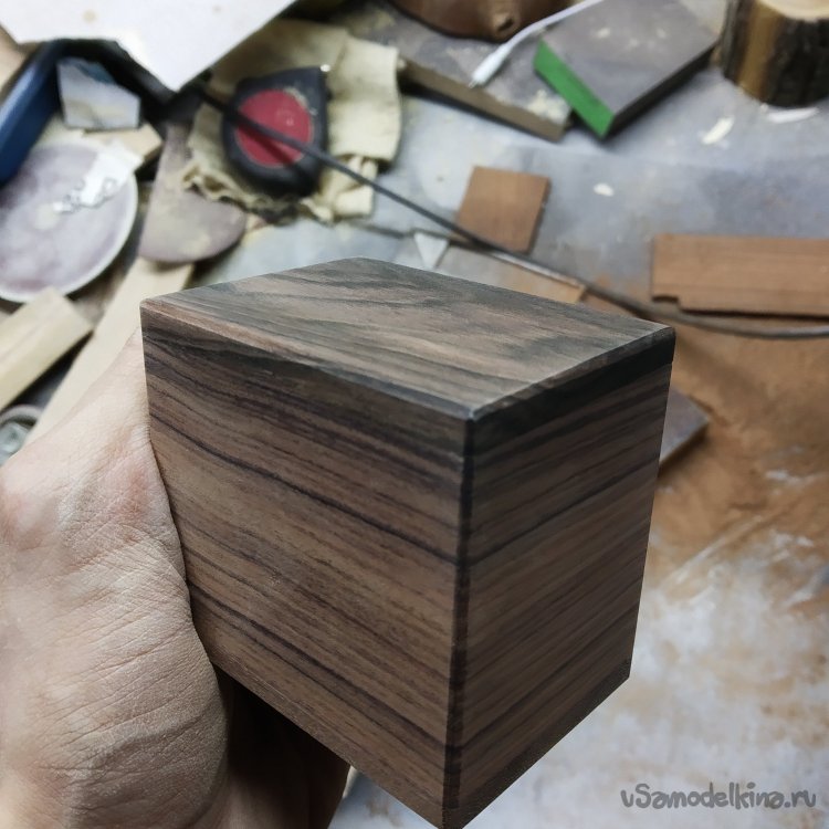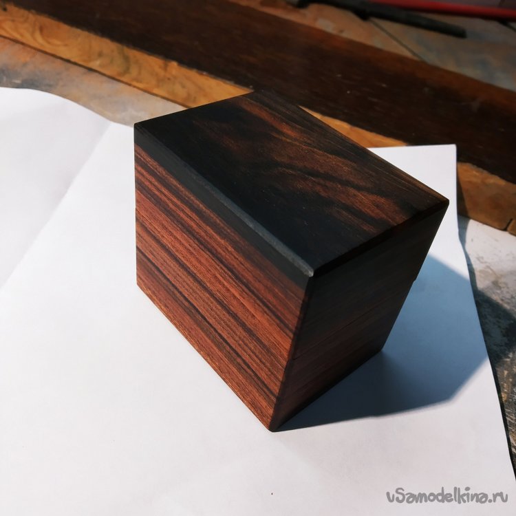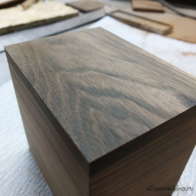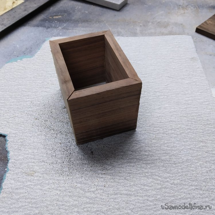Далее я прошлифовал верхние стороны коробочки, чтобы выровнять их для крышечки и донышка. Выше качество – выше цена, поэтому стараюсь не допускать ни одного зазора или щели в склейке.