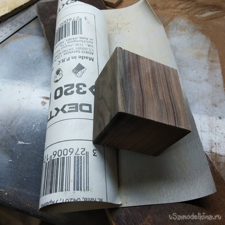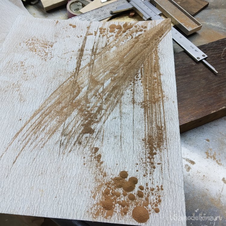 После этого заготовка уже блестит и шелковая на ощупь. Также финишную и 320 шлифовку я проводил отдельно на ровной доске, чтобы не задеть каких-либо неровностей стола, иначе пришлось бы перешлифовывать все заново.