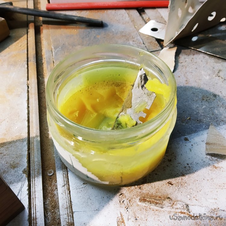 Пока это слабо видно, но после покрытия воском проявились бы царапины от односторонней шлифовки. Их нужно тоже тщательно удалять. Благо, это решается куском наждачки и несколькими пальцами.
