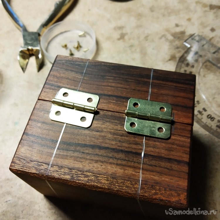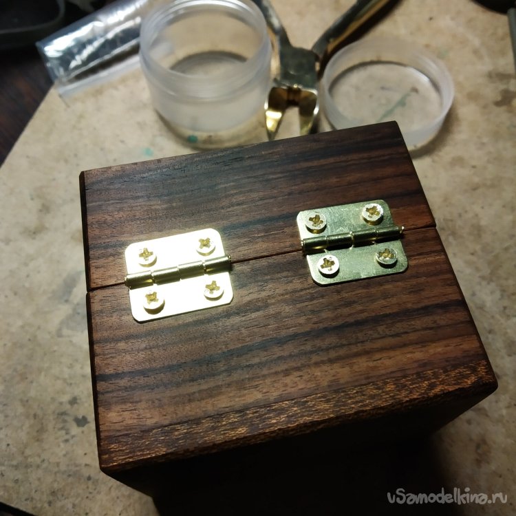 Ну и нашел в заначке пару петелек и заранее подрезанные винтики, так как они по 1см, а это много для плашек по 5мм.