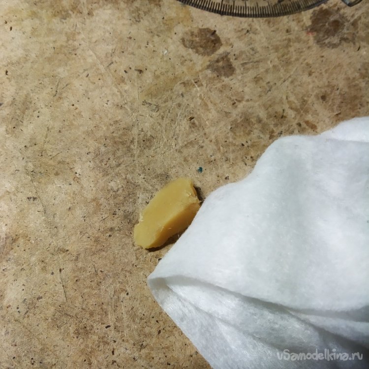 От резинок могут оставаться следы, причем сильно заметные. Это решается полировкой. Ее я провожу с помощью мягкой ткани и смеси восков, подобной мастике, но концентрированной, более восковой, соответственно более твердой.