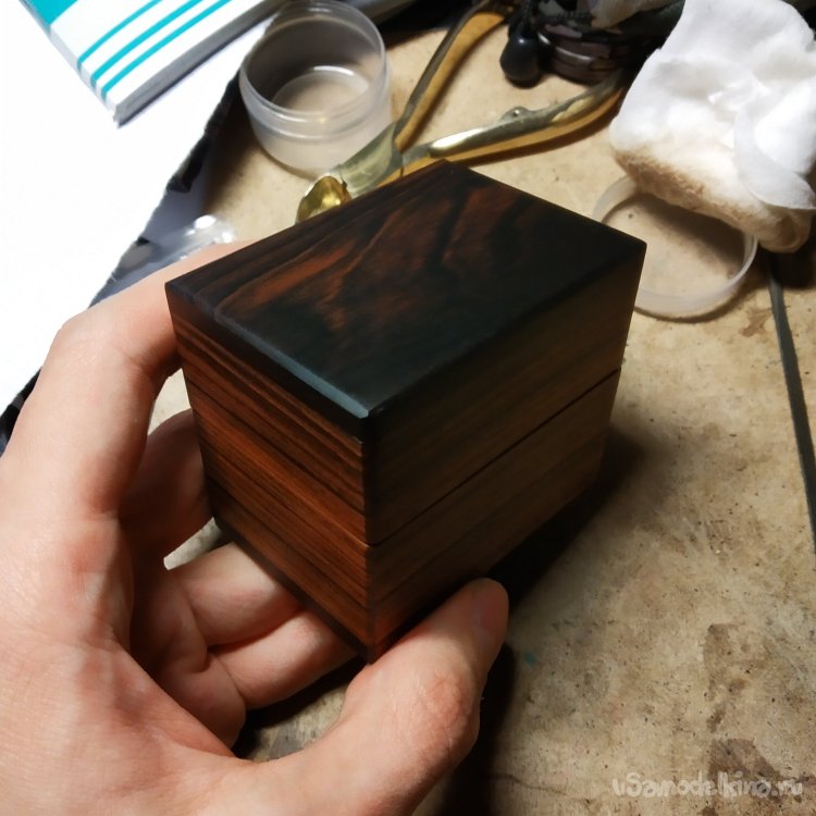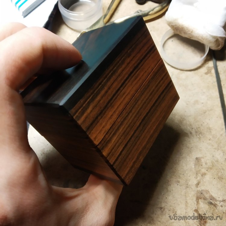 Наконец, я снова заполировал шкатулку восковой тканью, а затем уже чистой, чтобы убрать маслянистые следы и жирную поверхность изделия.