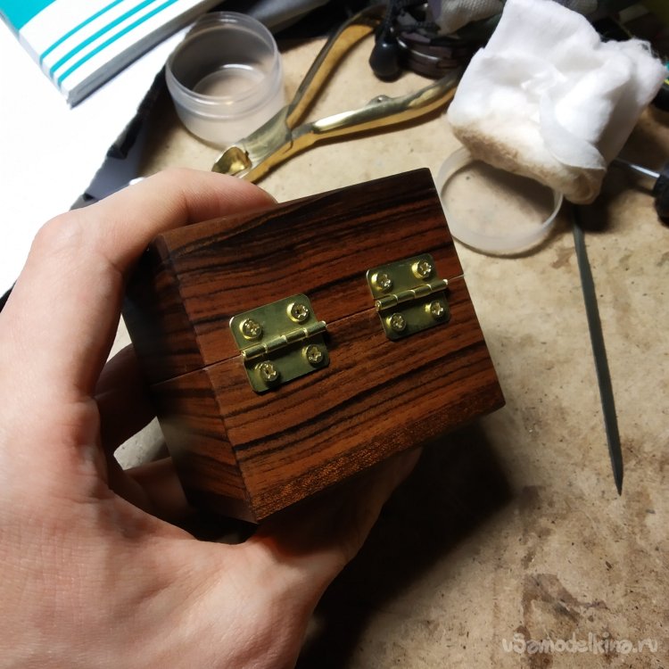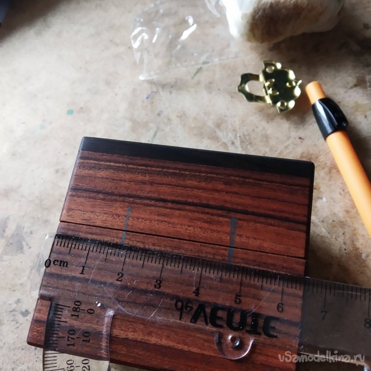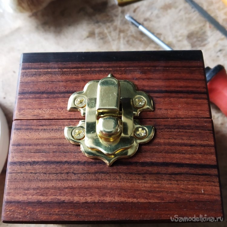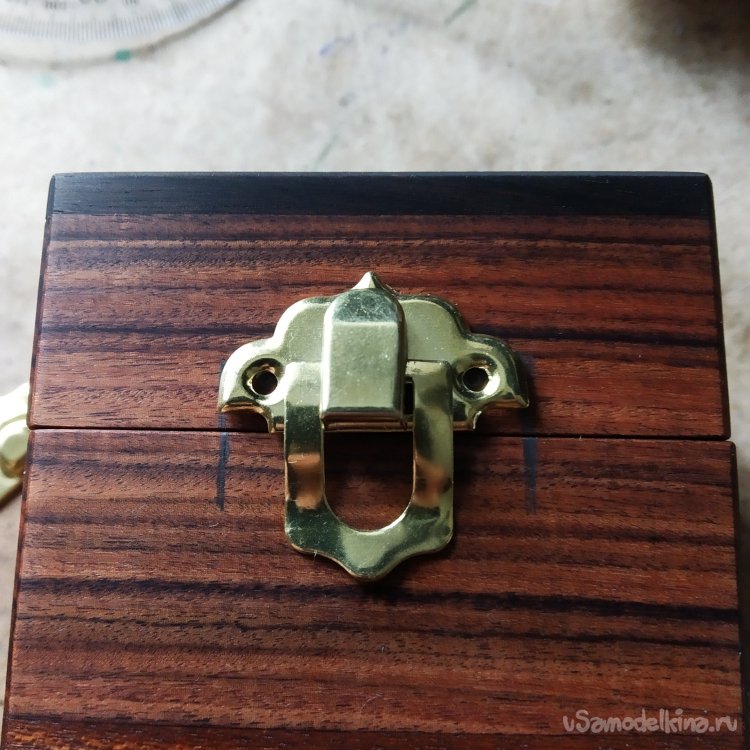 С замочком история интереснее – его нужно установить идеально в центре. Если сместить его хоть на миллиметр, то шкатулка превратится в ад для глаз, особенно такая мелкая.