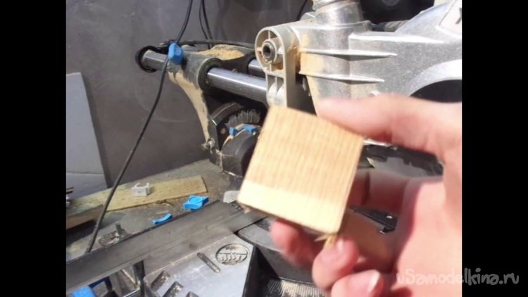 Далее я отторцевал брусок и отпилил от него кубик длиной 40мм на торцовочной пиле. Запах в мастерской стоял неимоверный.