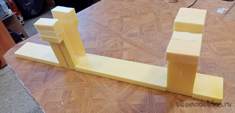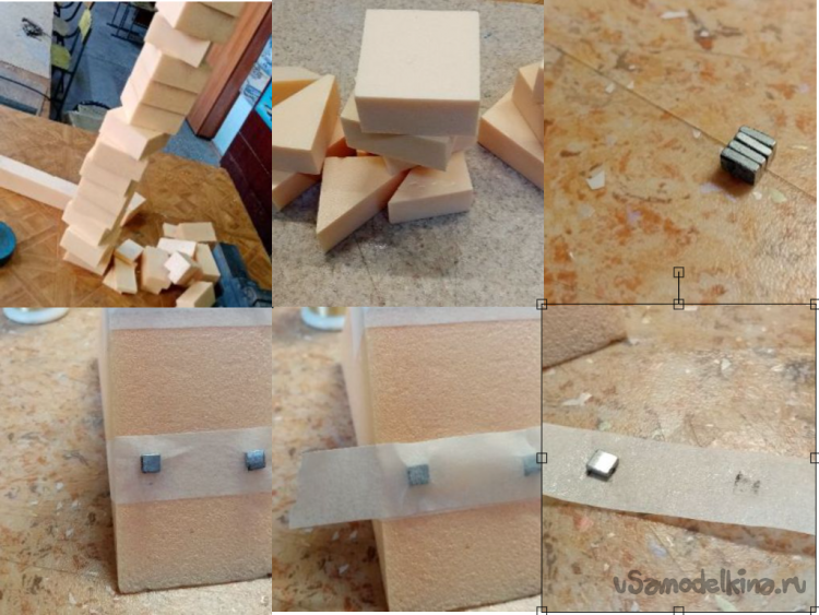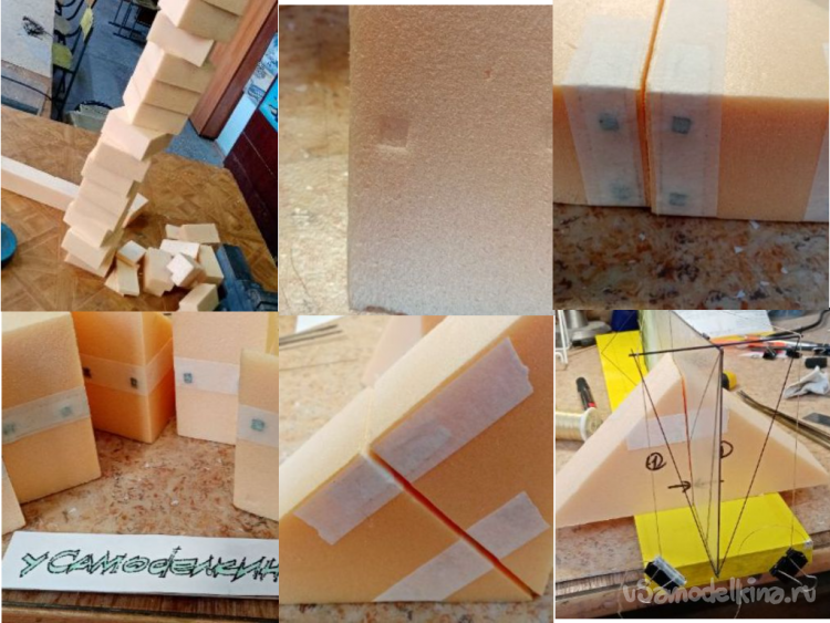 Для удержания элементов в различных положениях пробовал закреплять их при помощи нарезанных из утеплителя треугольников, фиксируя их между собой иголками.