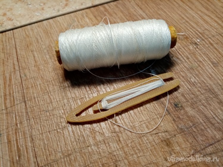Для улучшения работы с арамидной ниткой изобрел небольшой челнок, на подобие как плетут сети. В процессе ничего не виснет и не запутывается.
