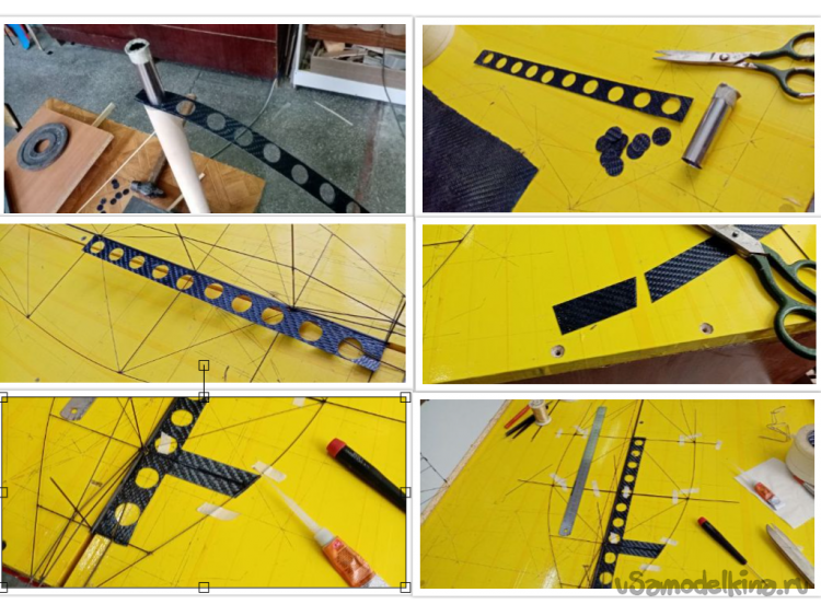 Соединения крыльев выполнил из пластиковых трубочек от смазки. Как раз подошли по внутреннему диаметру. Приклеил по месту на циакрин, дополнительно усилил соединение арамидной ниткой.