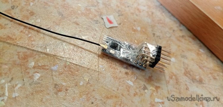 Оборачиваю его скотчем и можно устанавливать на место. Крепить к фюзеляжу буду на двойной скотч.