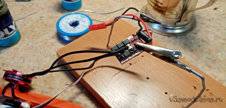 Провода с мотора припаиваю напрямую к регулятору, тщательно балансирую винт.