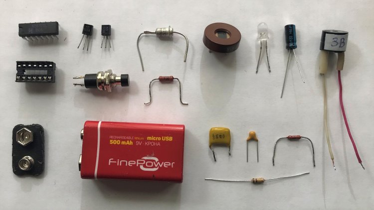 Почти все детали для СЗС2 изображены на рисунке 13. Выводы транзисторов коротко подстрижены для установки в самодельные сокеты.
