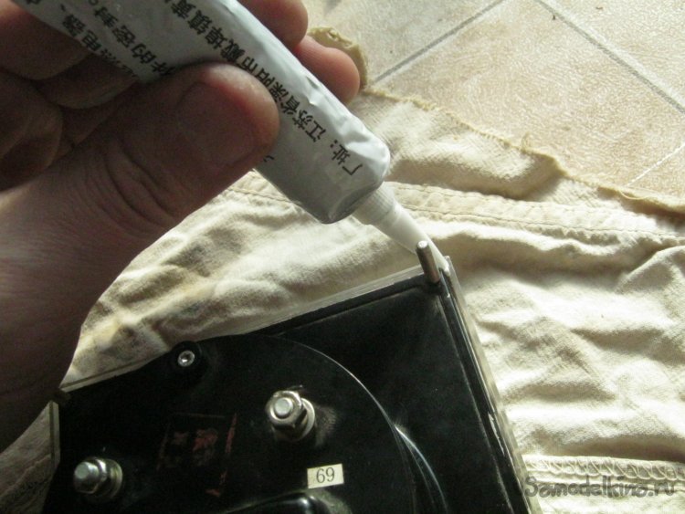 Прозрачная лицевая крышка прибора с арретиром приклеивается, для этого конструкция имеет специальный конусный паз. После проверки работоспособности измерительной головки собрал ее. Заполнил паз китайским силиконовым герметиком для радиомонтажа (Фото 4).