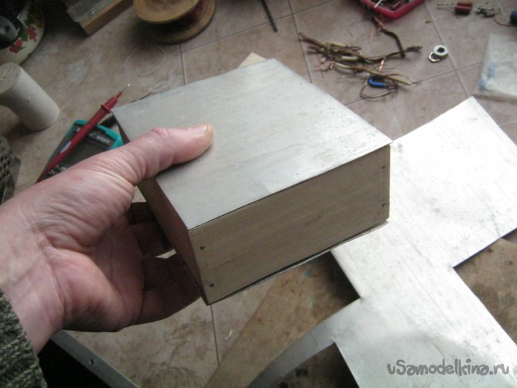 Лицевую и заднюю стенки сделал из нетолстого листового алюминия – остатков старых кровельных листов доставшихся по случаю. Толщиной около 1 мм. (Фото 11…14).