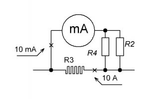 В милливольтметр постоянного тока превратил микроамперметр с пересаженной магнитоэлектрической системой – добавив последовательно, рассчитанный резистор. Действовал так – имея выпрямитель с силовым трансформатором, подобрал подходящую мощную нагрузку, соединил нетонкими проводами. Последовательно с нагрузкой включил фабричный мультиметр в режиме амперметра (до 10 А). Вторым мультиметром замерил падение напряжения на встроенном измерительном шунте. Применив закон тов. Ома, рассчитал сопротивление шунта.