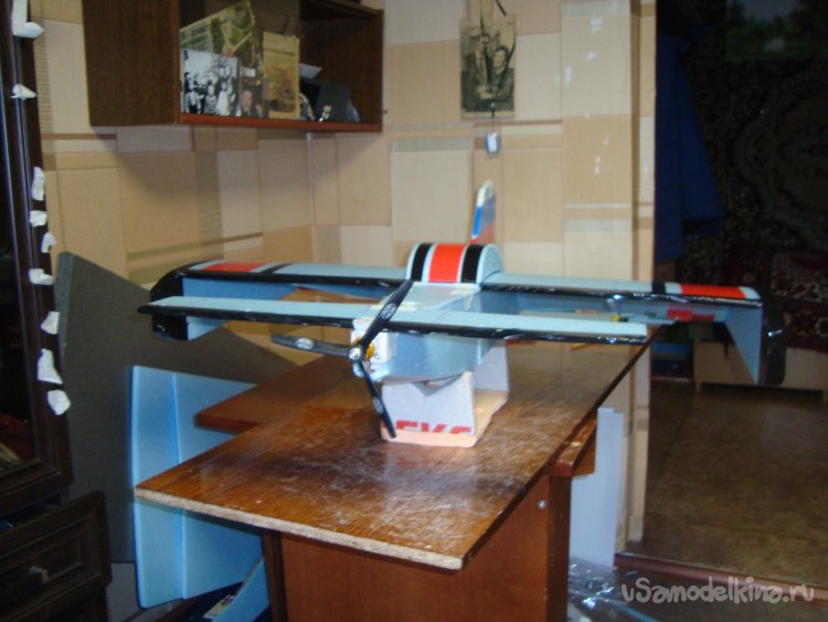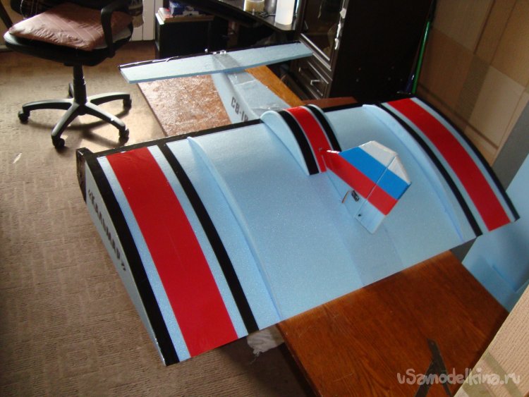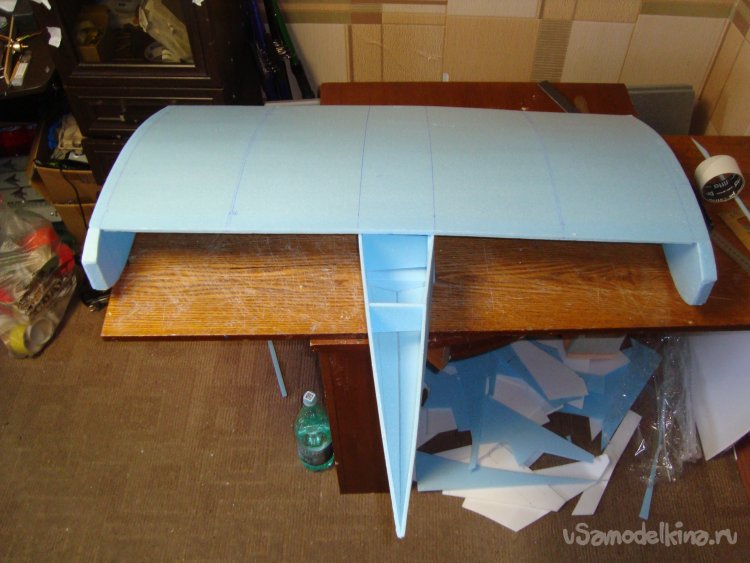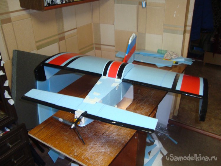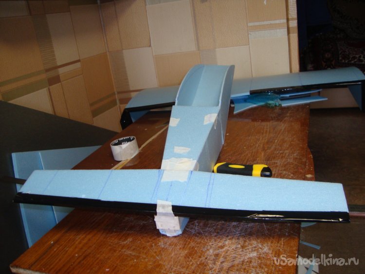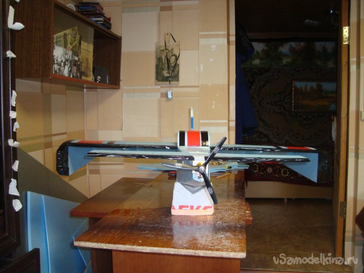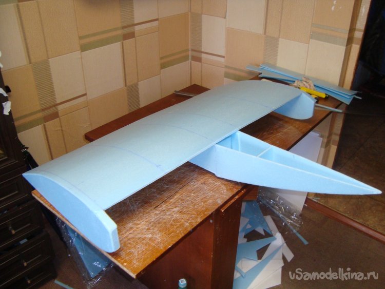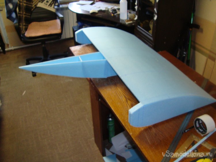 Примеряю готовое крыло на корпус модели.