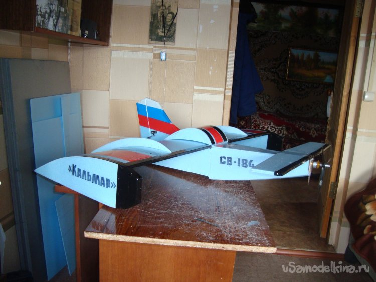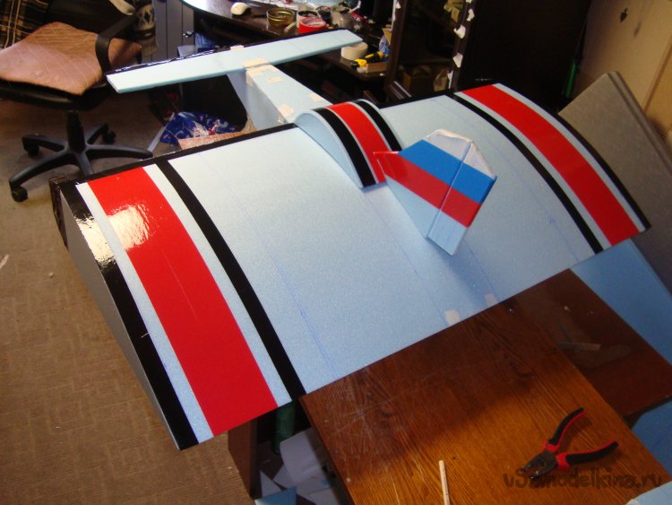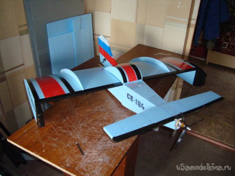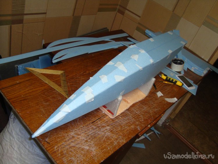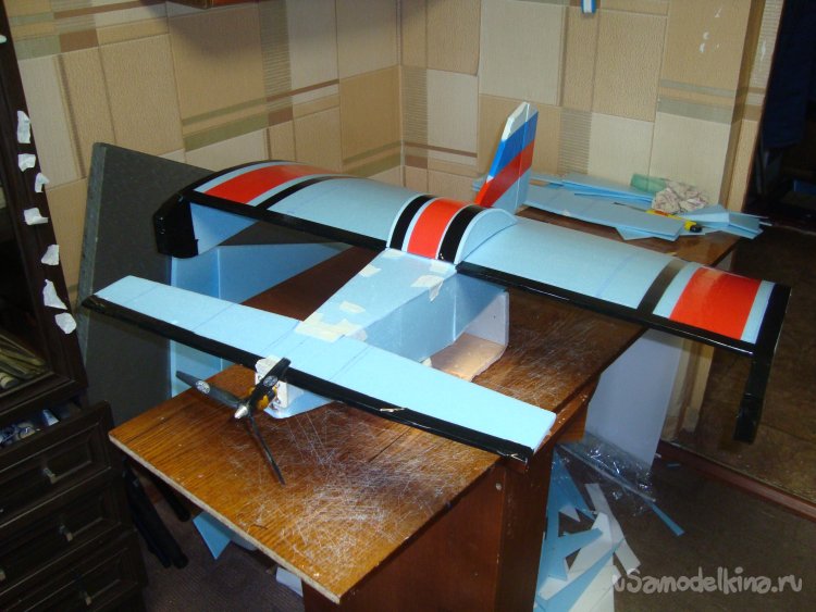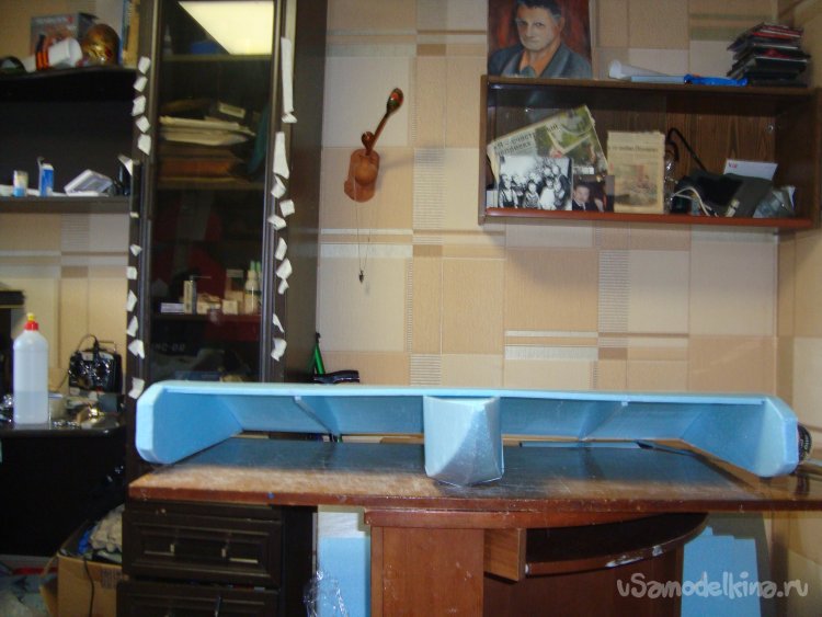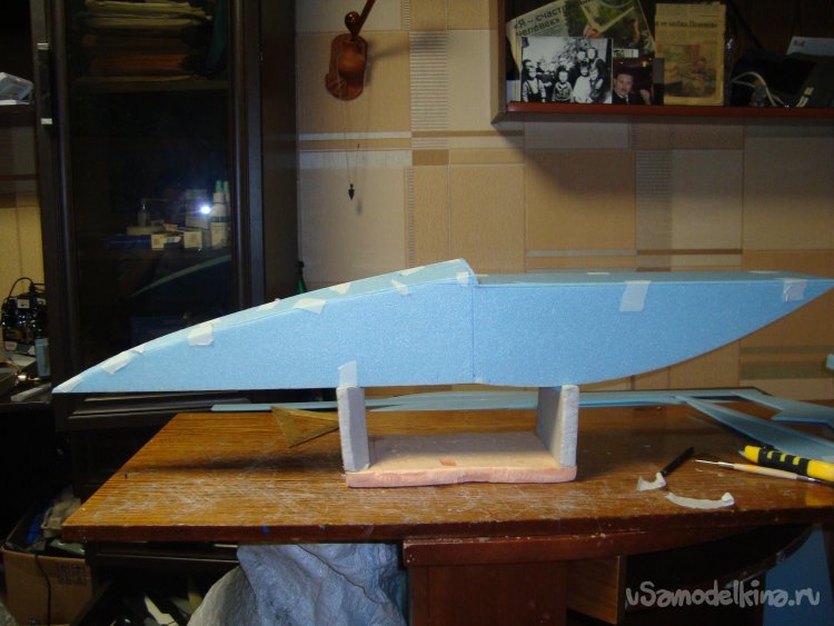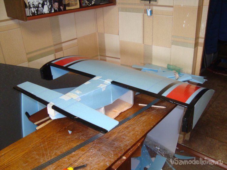 Примеряю готовое крыло на корпус модели.