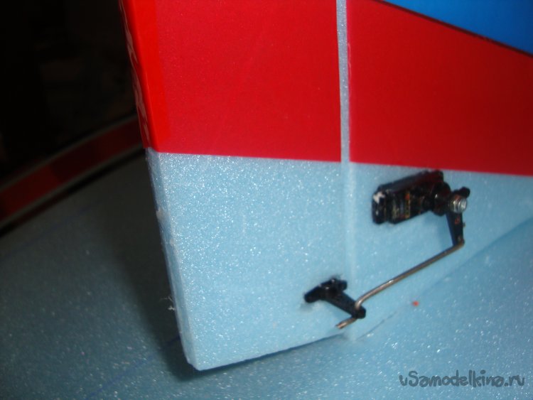 Разметил и установил сервомашинку для руля направления. Подсоединил тягу.