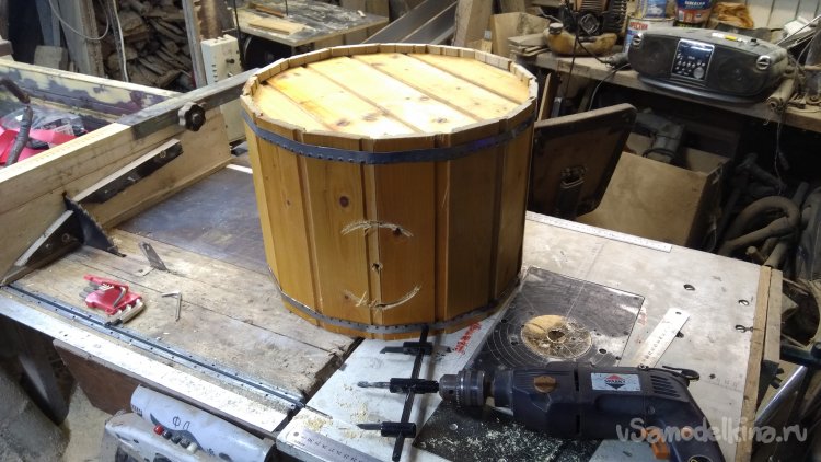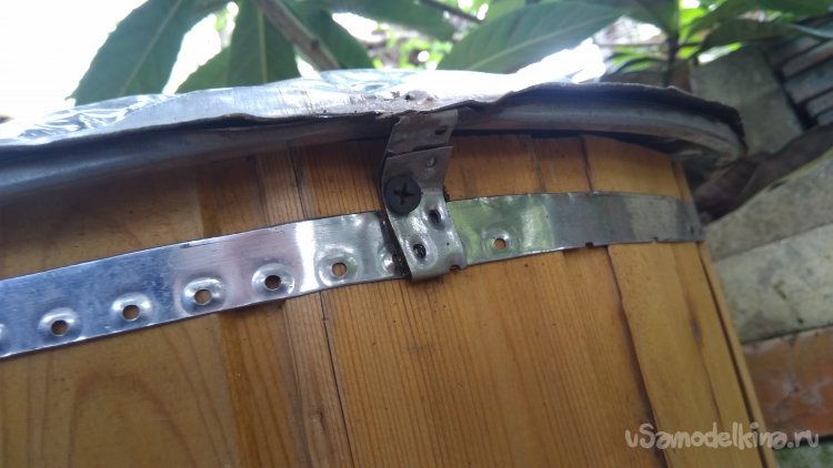 Так как это не бочка, стенки прямые, поэтому стягиваю не обручами, а хомутами (те что в предыдущем проекте по восстановлению ножниц раритетных)