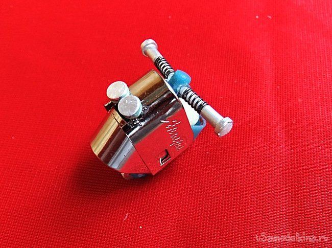 Переходим к задней части мотоцикла. Используется здесь вторая головная часть зажигалки. Собираем глушители