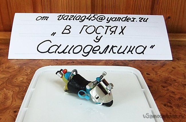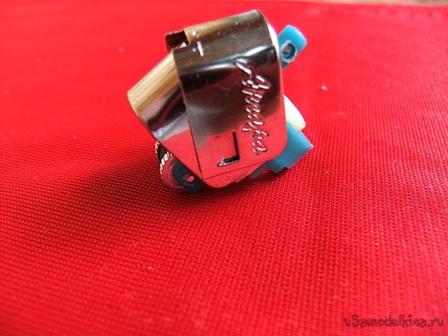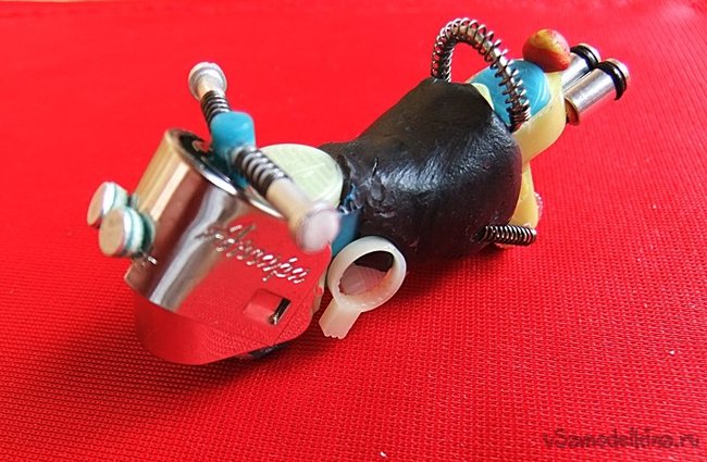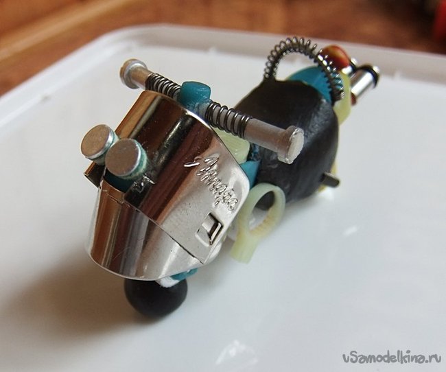 Из металлических оправ головной части зажигалки делается переднее крыло и обтекатель мотоцикла
