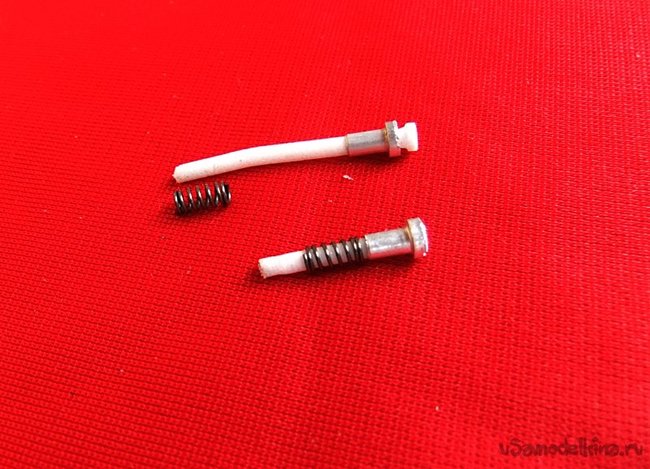 Из кусочка проволоки и пружинки делается задняя спинка сидения