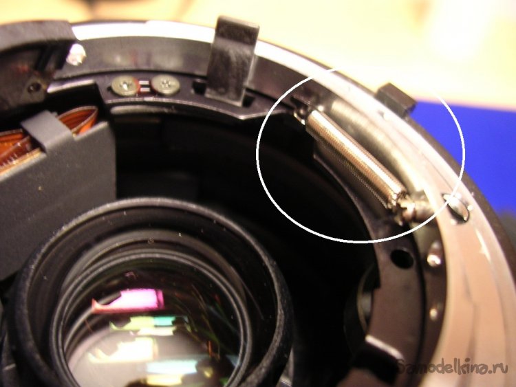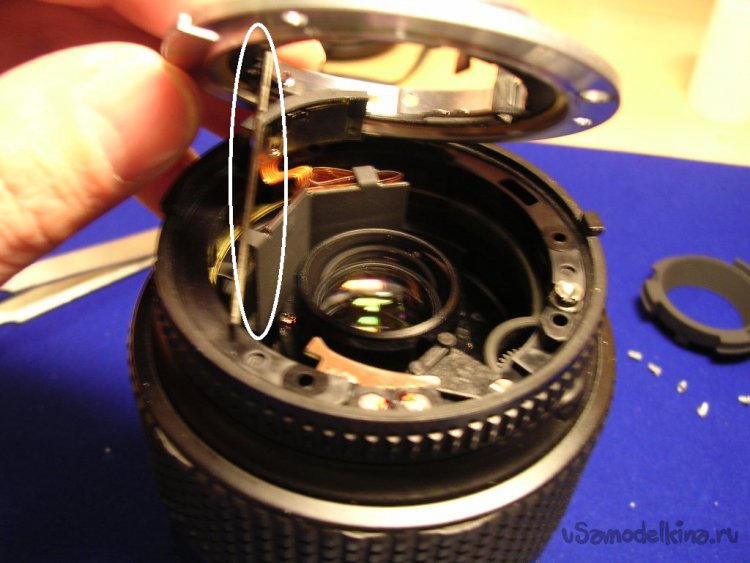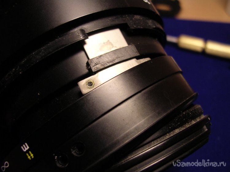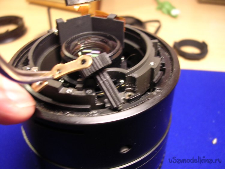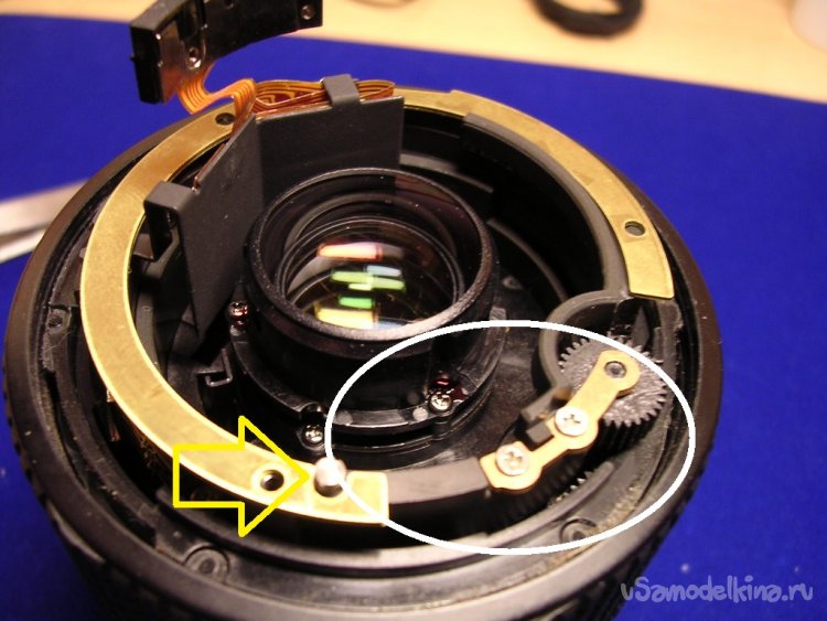 Вот механический привод фокуса, прутик со шлицом в который упирается «отвертка» из тушки фотоаппарата при установке объектива.