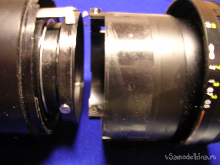 Затем демонтирую первое пластиковое кольцо под ним могучие проставки из меди, наверное. Компенсаторы коррекции фокуса.