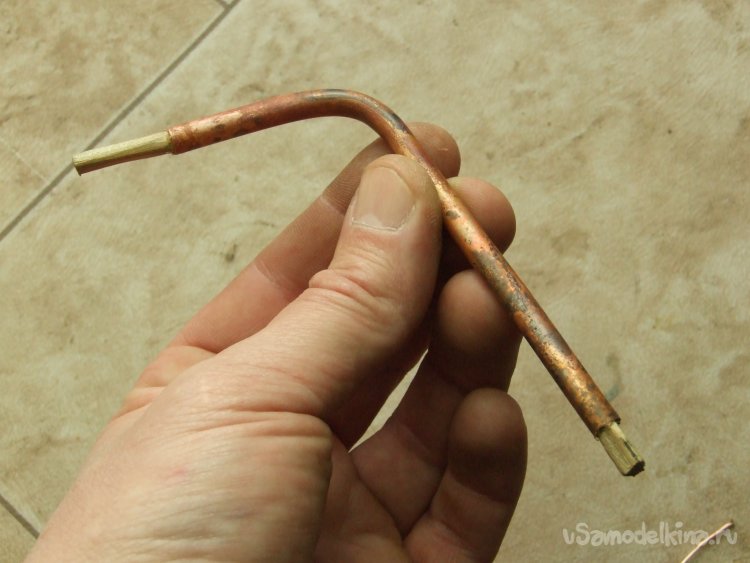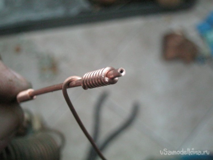 Десяток сантиметров на конце отжег – нагрел компактной газовой горелкой на кирпичике, до малинового свечения, дал остыть. Мягкую податливую медь выровнял подобно старому обмоточному проводу – несколько раз с изгибом пропуская через комок ветоши.