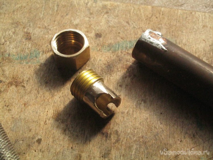 Фото 11. Часть корпуса обточена мелким напильником и плоским надфилем и превращена в присоединительную муфту для монтажа пайкой.