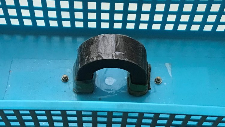 В ДКТС магнит установлен в соответствии с рисунками 2А и 3А. При этом подковообразный магнит прижимается к пластмассовому корпусу кормушки стальным сине-белым бандажом (сталь толщиной 0,25 мм). Не выпасть магниту из пластмассового корпуса помогают 4 слоя белой изоленты, намотанные на оба полюса магнита и скрепляющие магнит с бандажом. Бандаж крепится к пластмассовому корпусу теми же двумя латунными винтами М3х8 с гайками. Края бандажа, чтобы птицы не поцарапали оперение, посещая нижнюю часть кормушки, обработаны напильником и обклеены одним слоем белой изоленты. Как видно на рисунке 3А, теперь магнит имеет возможность непосредственно примагничиваться к стальному козырьку кухонного окна. Если с козырька дополнительно счистить несколько слоёв старой краски и покрыть козырёк слоем серебрянки, то на такой поверхности кормушку уже не сдвинуть взмахом крыла голодного голубя.