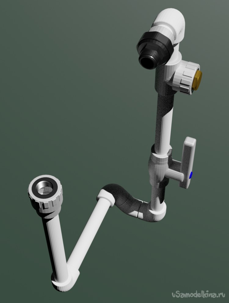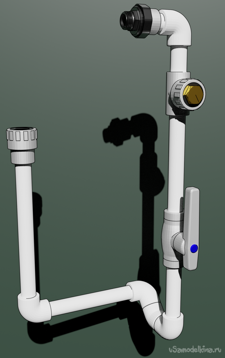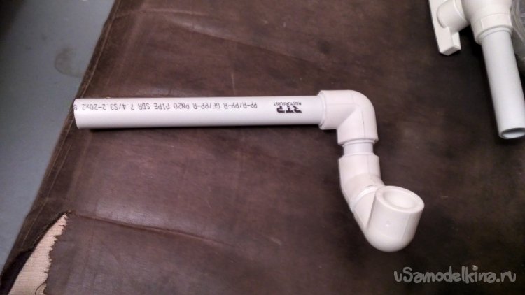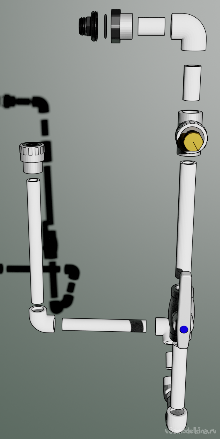 Собираем гибкий шланг, уголок на 90 и трубу на 40 см воедино. В итоге получилось две вот такие детали.