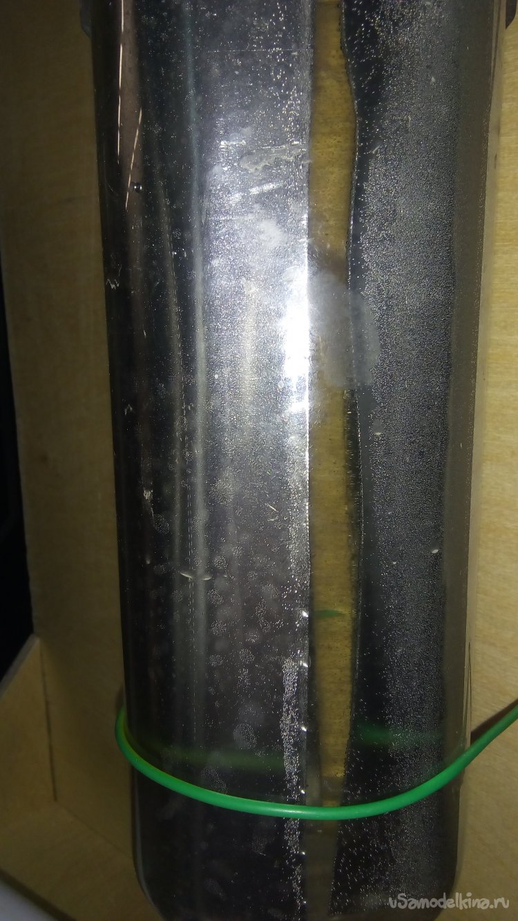 Листы прикрепляются изнутри к болтам, зажимаясь с двух сторон гайками, после чего опускаются в колбу, наполненную водой.