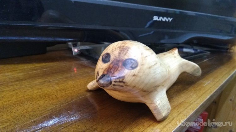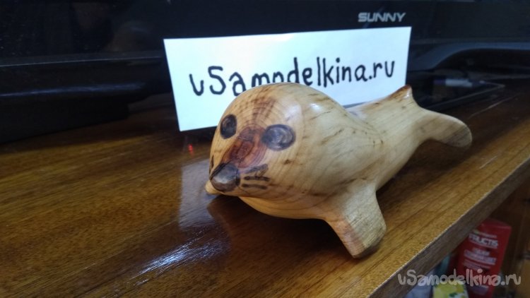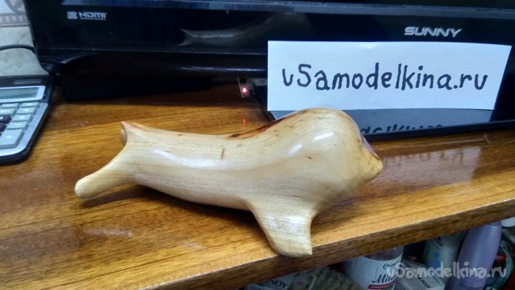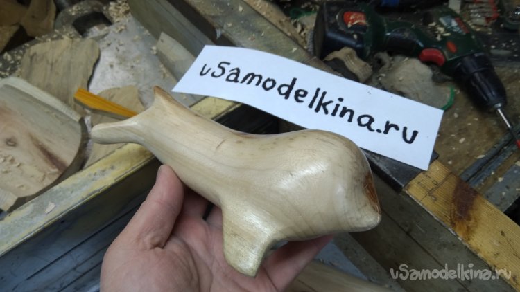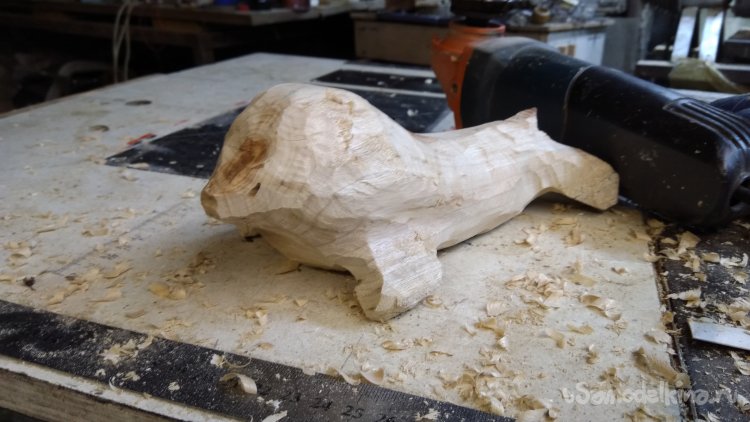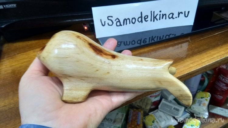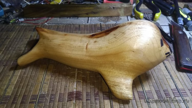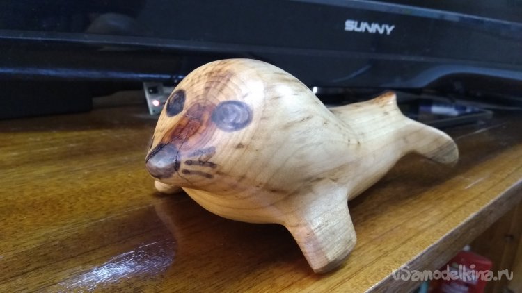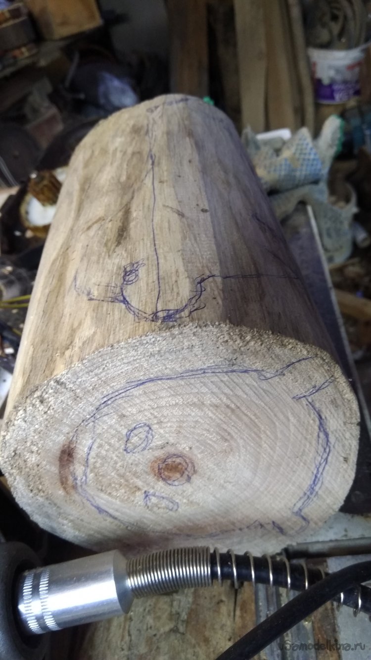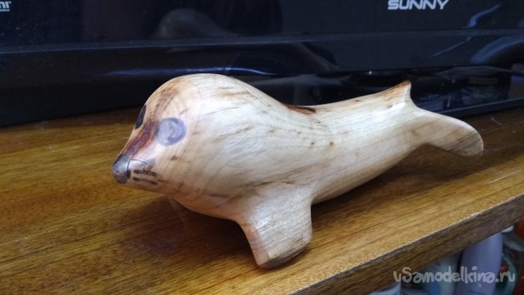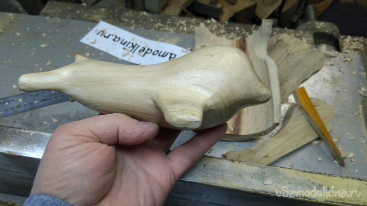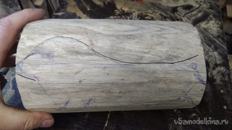 Пару месяцев назад задумал сделать белька. Это маленький тюлень ) Отпилил чурку, набросал эскиз, и забросил. То у меня пильное полотно лопнуло, то шестерня в приводе ленточной пилы свернулась, то по высоте оказывается немножко промахнулся и в самодельную ленточную пилу заготовка не встала. 210 мм всего максимальная высота пропила. Ну в общем я за эти пару месяцев уже многое что сделал, хоть и погода мешала, огородом был занят, и прочими хозяйственными делами. Но вот вчера после комментария в интернете, вспомнил что у меня недоделка валяется. Выпилил из чурбачка заготовку, предварительно доработав ленточную пилу. Пилил белька в трёх проекциях, на видео только две проекции заснял, неудобно одному и пилить, и снимать и держать в голове что я хочу получить в результате. На видео если посмотреть что я выпилил, так с трудом можно догадаться вообще что это ))