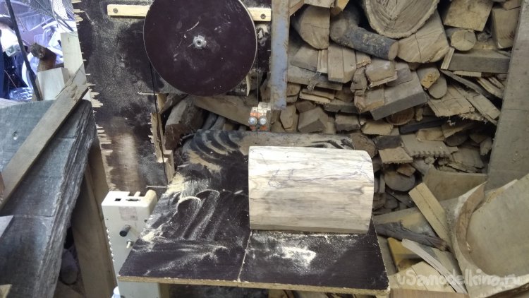 Снял материал с одной из боковых поверхностей чурки, она будет базовой при пилении