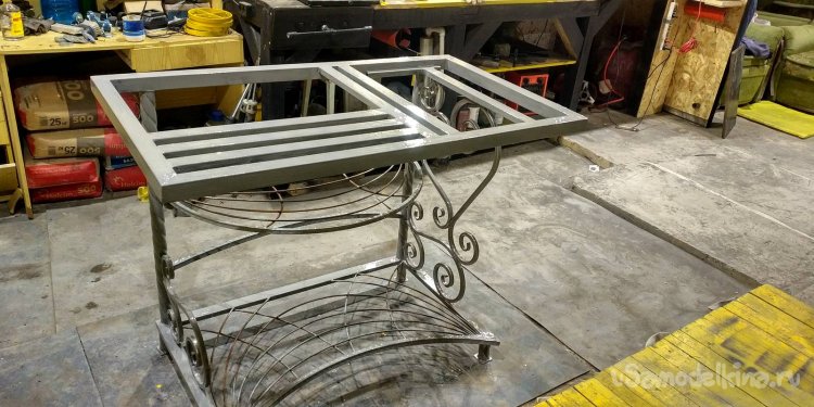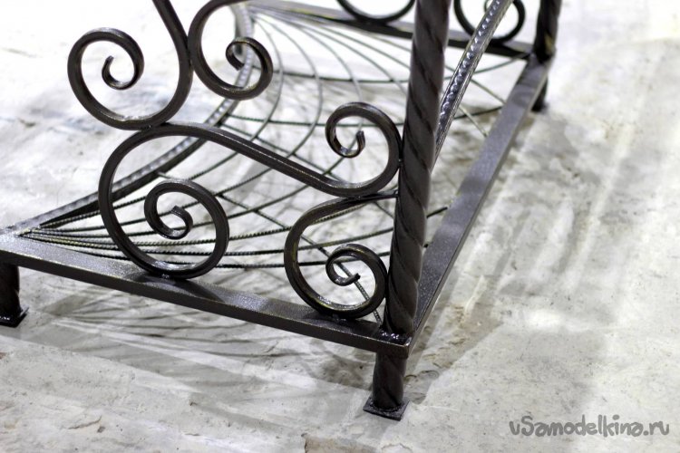 После этого я сделал среднюю полочку. Только теперь она, наоборот, полукруглая. Выполнил из профтрубы 15х15.