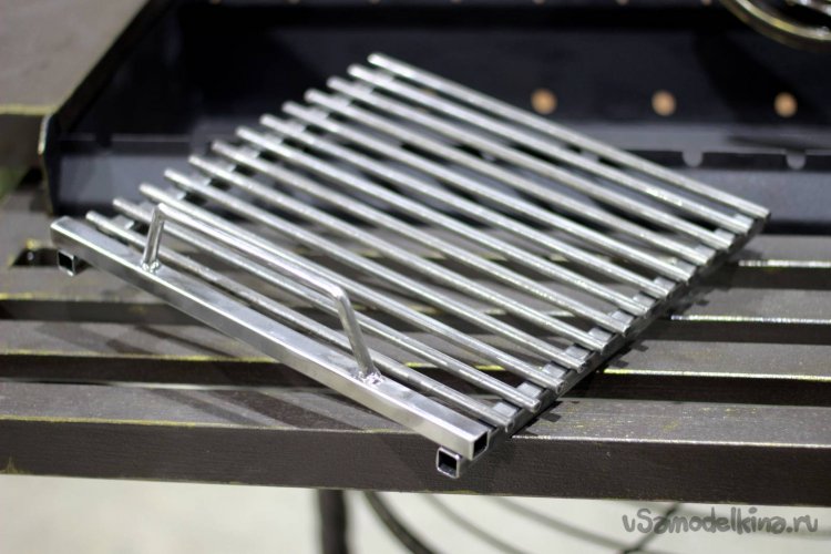В самом конце я сделал гриль-решетку из 8мм прутка. Ничего сложного. Расстояние между прутками 15мм. Ширина - 30см, ровно вполовину мангала. А на оставшейся половине будет жарится шашлычок))