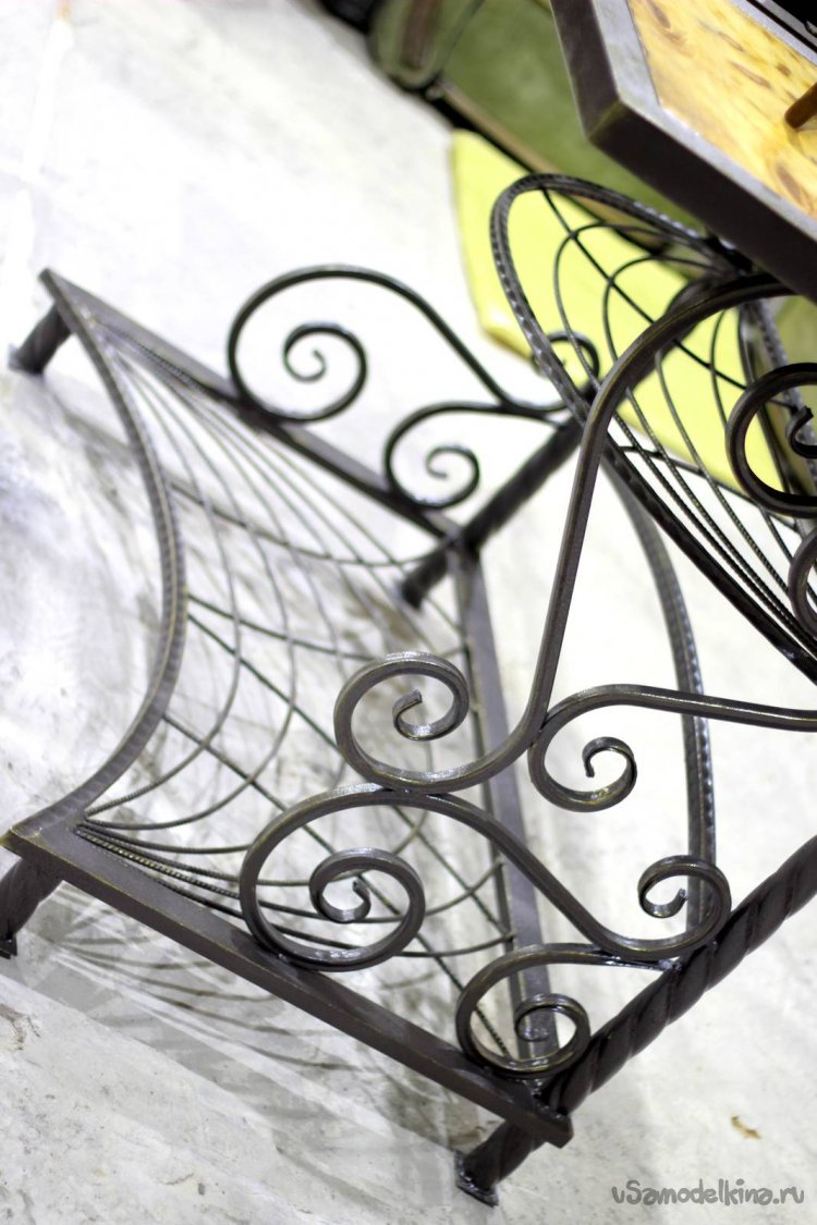 Чтобы добавить жестокости, я приварил между основанием и вертикальными стойками элементы ковки – запятые и валюты. Получилось прикольно!