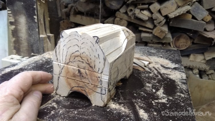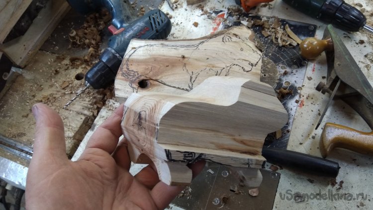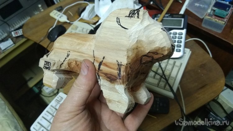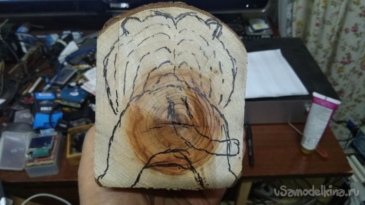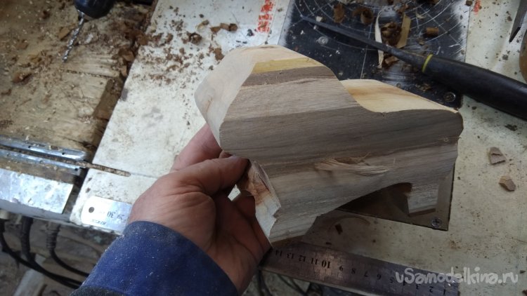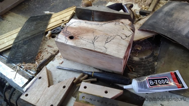 Для изготовления использовал деревяшку, один кусок. Но потом пришлось пилить и второй. В первом дефект, который я не могу обойти. Но потом пристрою видимо на другую поделку.
