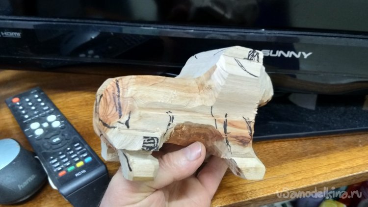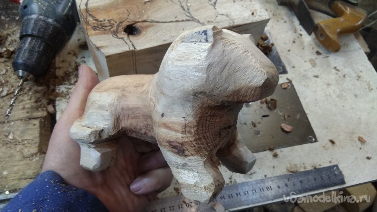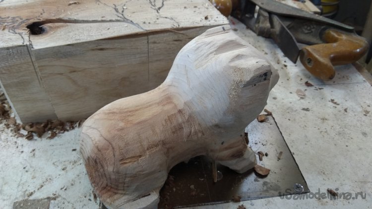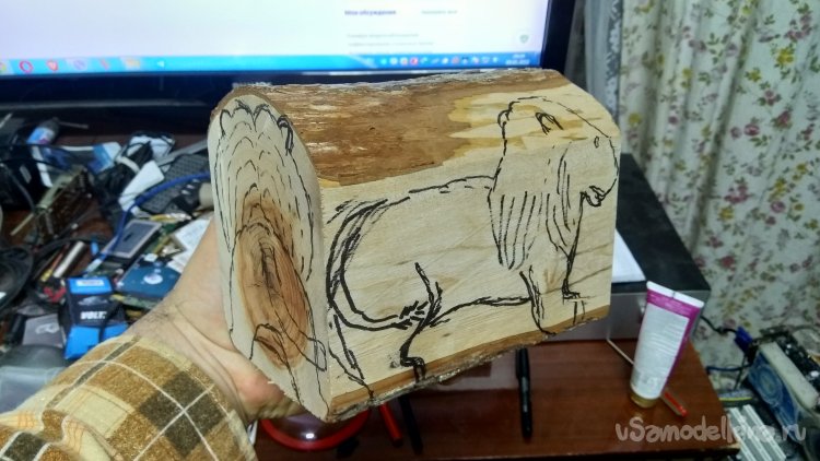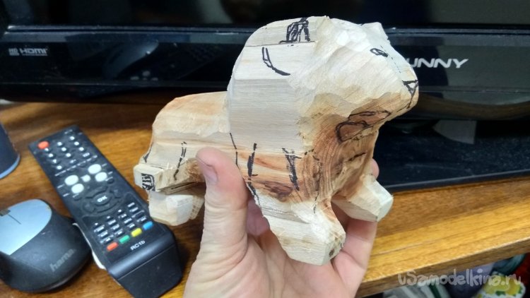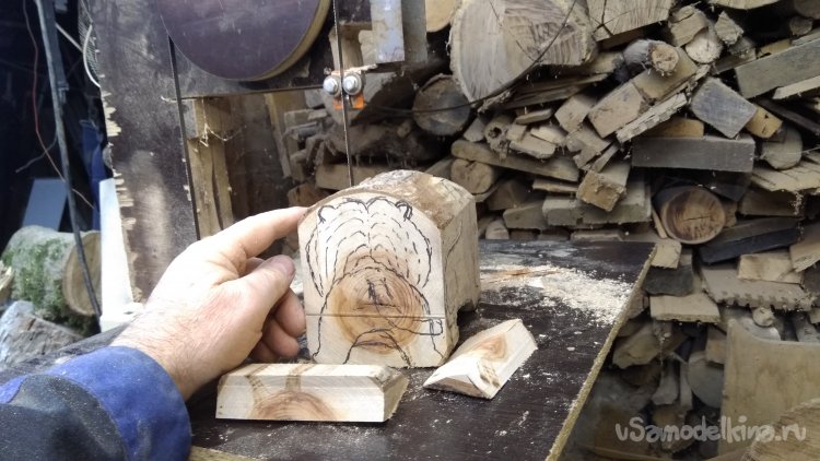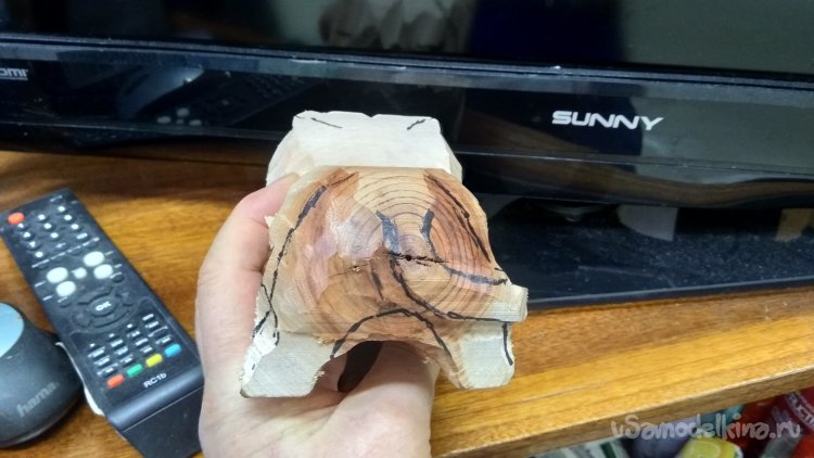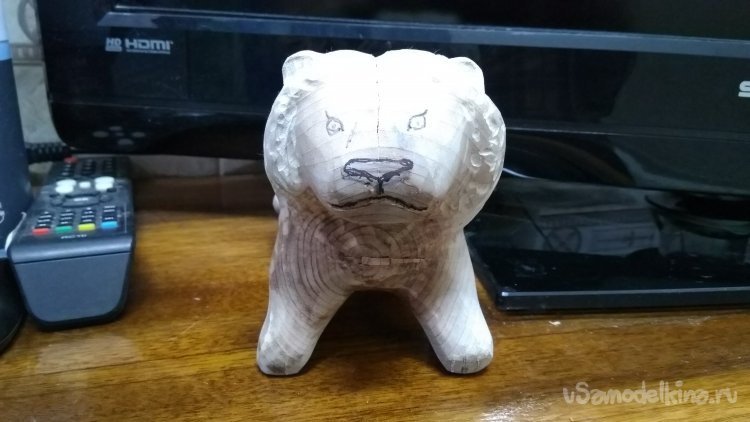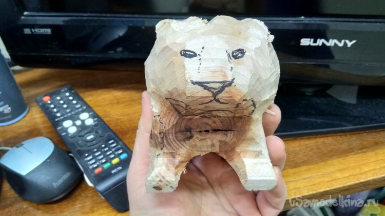 Опилил, внутри оказалась полость от сучка, для льва не годится заготовка, может потом что-то другое сделаю
