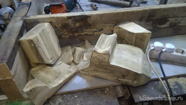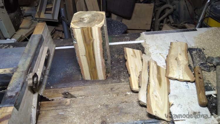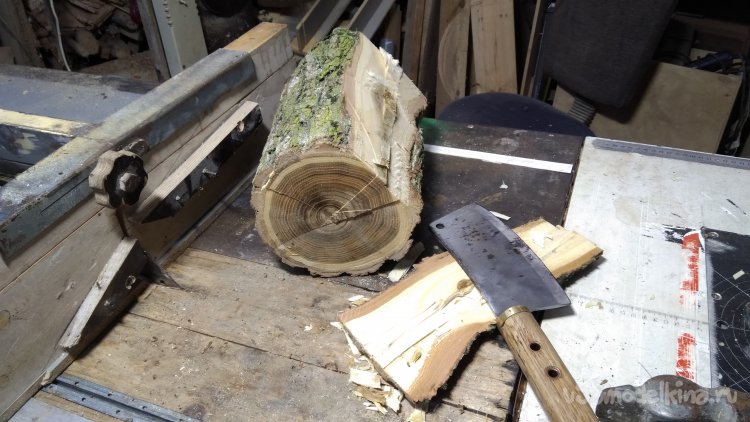 Начинаю убирать всё лишнее, топориком, насадками строгальными и т.п.