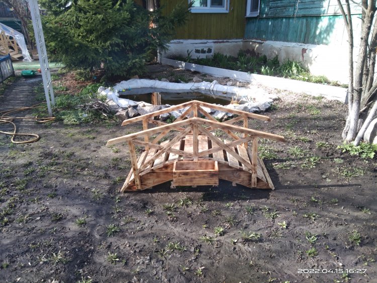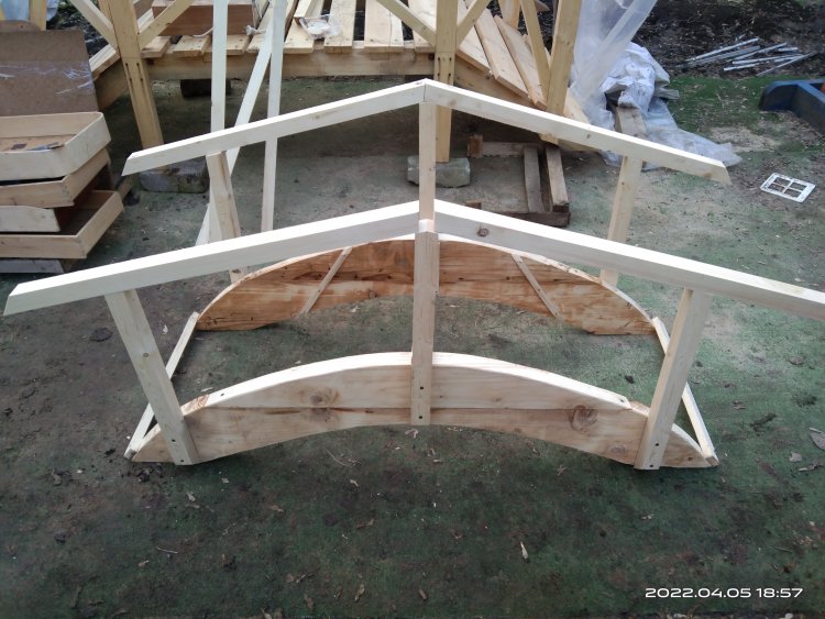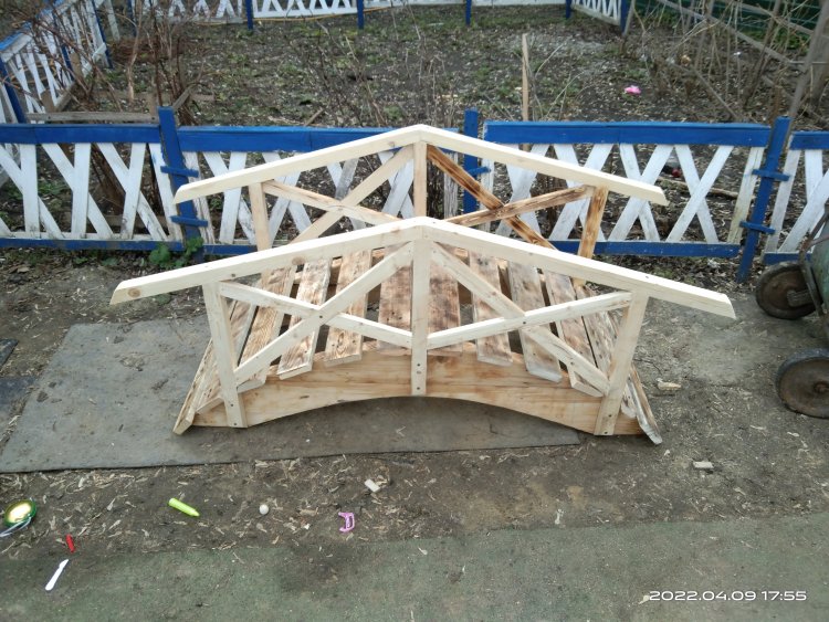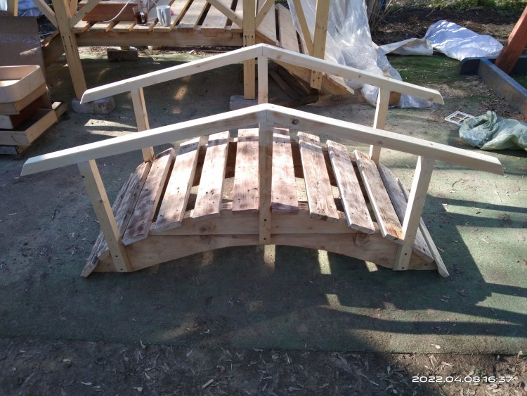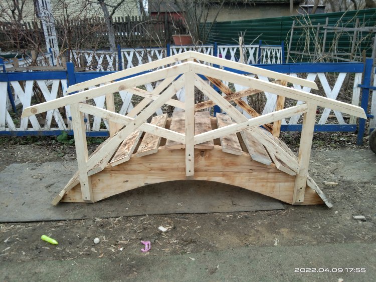 Садовый декоративный мостик - это основная фигура практически любого садового участка, так сказать центральная фигура в вашем дизайне. Наличие такого мостика оправдывается не только тогда, когда на участке есть какой-нибудь водоем или мини-ручей, но и в отсутствии таковых. Его можно установить и над руслом сухой речки, по которой высажены какие-либо стелящиеся растения или рассыпана галька, которые как бы символизируют водную гладь, либо перекинуть его через садовую дорожку. Идея о создании такого элемента декора появилась спонтанно. Разбирали старую кровать, а в ее конструкции были использованы доски толщиной 40 мм, да и сами доски были достаточно широкими. Поэтому решил попробовать сделать горбатый мост, который когда-то видел на просторах интернета.