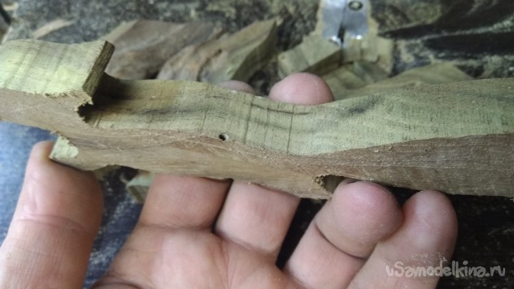 Вот такие методы лечения. Дырочка прогрызенная древоточцем сквозная, но я чопики только на входе поставлю.