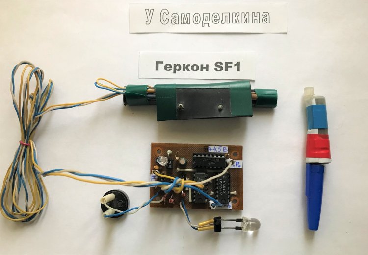 САО6 в сборе. Сине-красная палочка справа – это постоянный магнит, которым демонстрируется переключение геркона SF1.