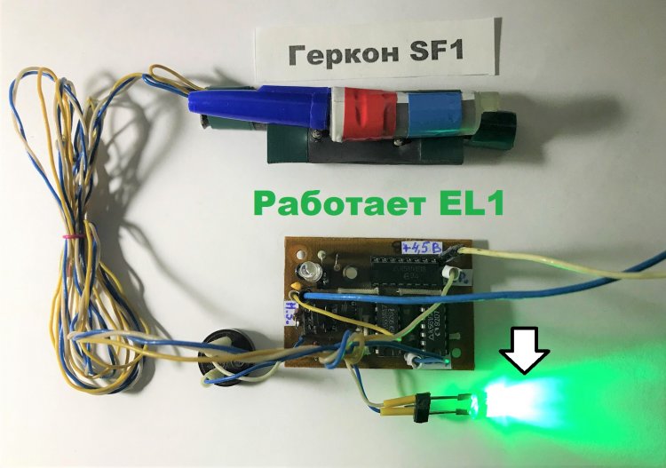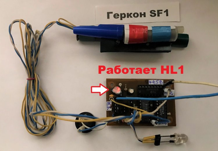 Маркировка штырей-контактов «Н. Р.», «Н. З.» и «Общ.» на прямоугольниках из белой изоленты, наклеенных на ПП, относится к геркону SF1. (Не перепутайте «Общ.» и общий провод питания, к которому подключается «минус» GB1).