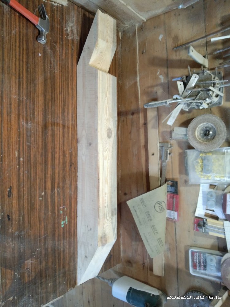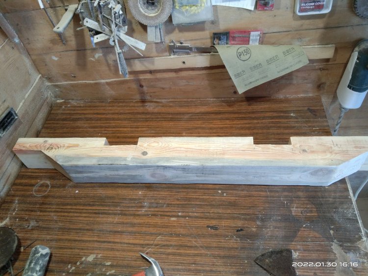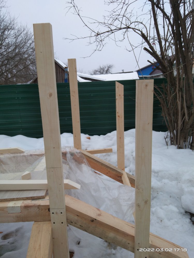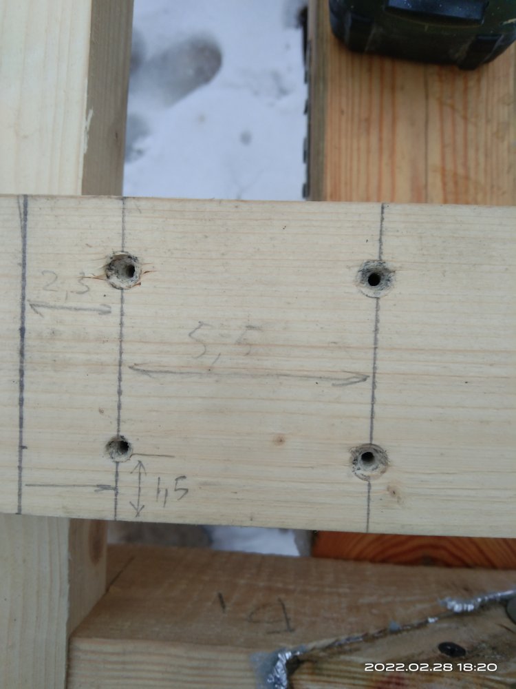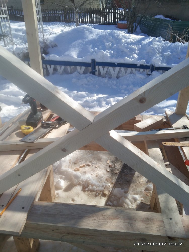 Сфотографировал полученный результат и отослал заказчице. Вот с этого момента и начинается все самое интересное! Так как делалось все практически под неусыпным контролем заказчицы, т.е. практически каждый этап был сфотографирован и отсылался, никакого подвоха я не ожидал! Ответ я ждал несколько дней, но не особо и волновался, времени еще много, по договору я должен был отдать готовые изделия в середине марта, да и мало ли какая ситуация может быть у человека. И вот наконец мне пришел ответ. Якобы она не так представляла себе этот мост. И это при том, что она полностью видела что получается! Но самое интересное это то, что человек на досуге, или как ей пришла в голову эта мысль, решил увеличить размер водоема над которым должен стоять этот мост! И, соответственно, такое расположение ножек ей не подходит!! После продолжительных препираний решили сделать всю основу заново, т.к. предложенные варианты заделать углубления под ножкам ее не устраивали! Пришлось заново покупать брус, благо все расходы оплачивала заказчица и делать все заново!