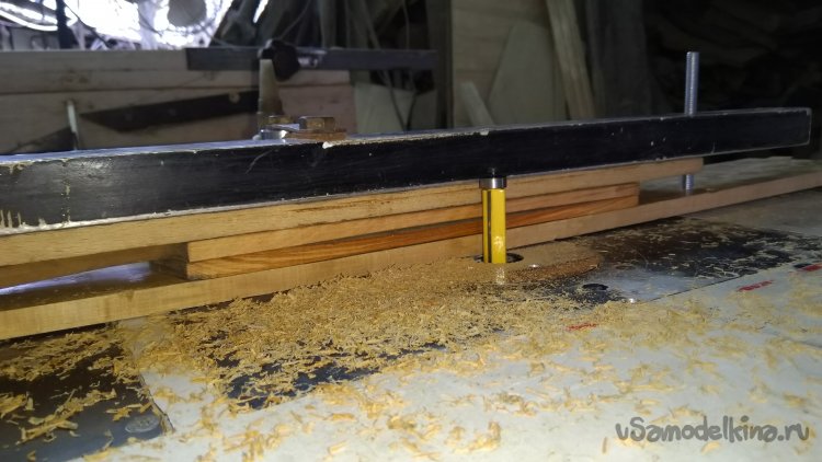 Фреза с опорным подшипником установлена во фрезер который расположен под столом.
