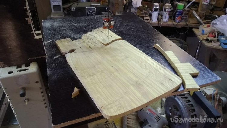 Склеенный щит шлифуется, рисую на нём форму, и выпиливаю из него желаемое.
