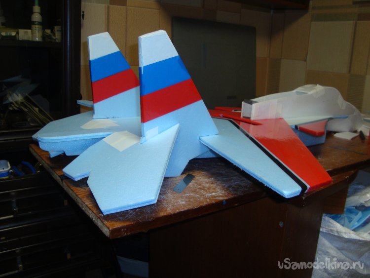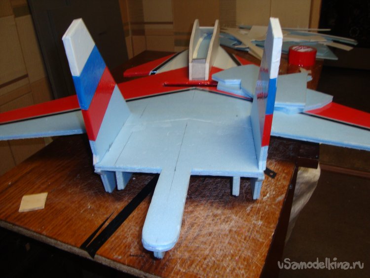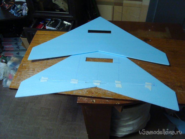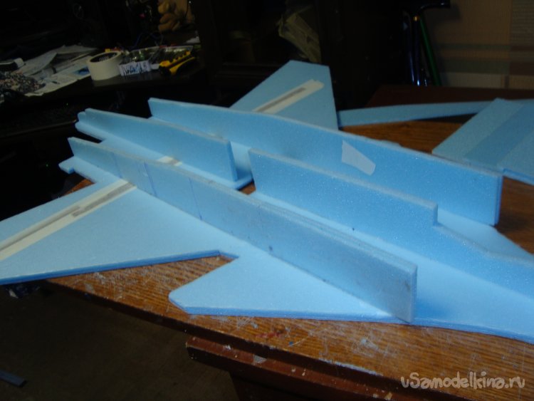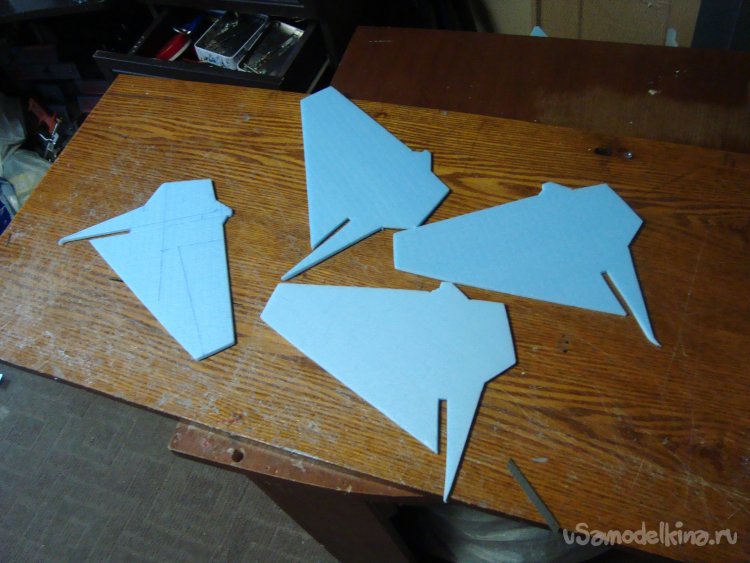 Несущую плоскость крыла , кили и элевоны вырезал из подложки. Все детали делаются в два слоя.