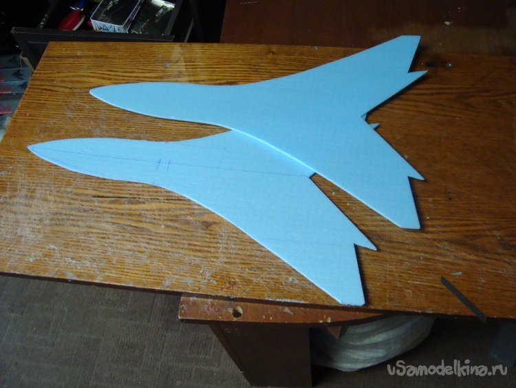 Переношу рисунок прямо на листы простой , листовой подложки под ламинат, которую решил использовать как основной материал для постройки модели.