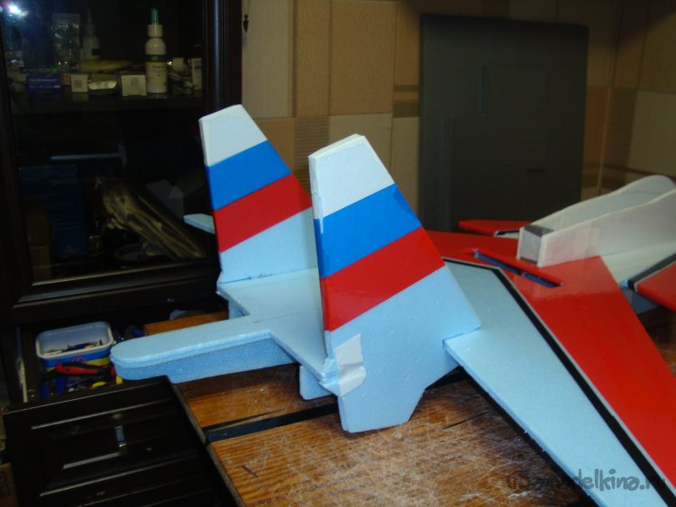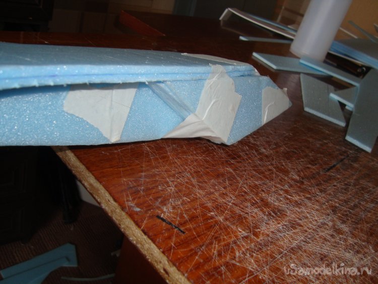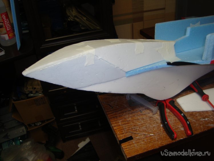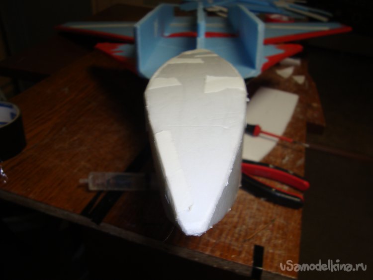 В заключение делаю облицовку носовой части фюзеляжа белой потолочкой.