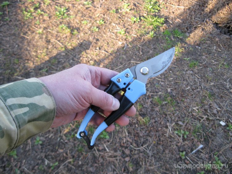 Для борьбы с этой порослью, а также для последующего изготовления подпорок из нее, нам понадобится всего лишь один инструмент – секатор. При этом отмечу, что секатор должен быть хорошо заточен.